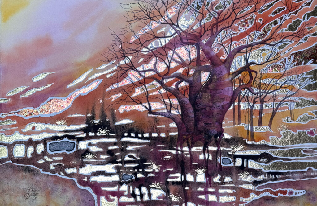 The land is never completely silent. If it isn’t birds, it’s cicadas, crickets, wind — movement layered over time. These works come from listening closely to the Kimberley. Not to loud declarations, but to what is carried in rhythm, weather and change.