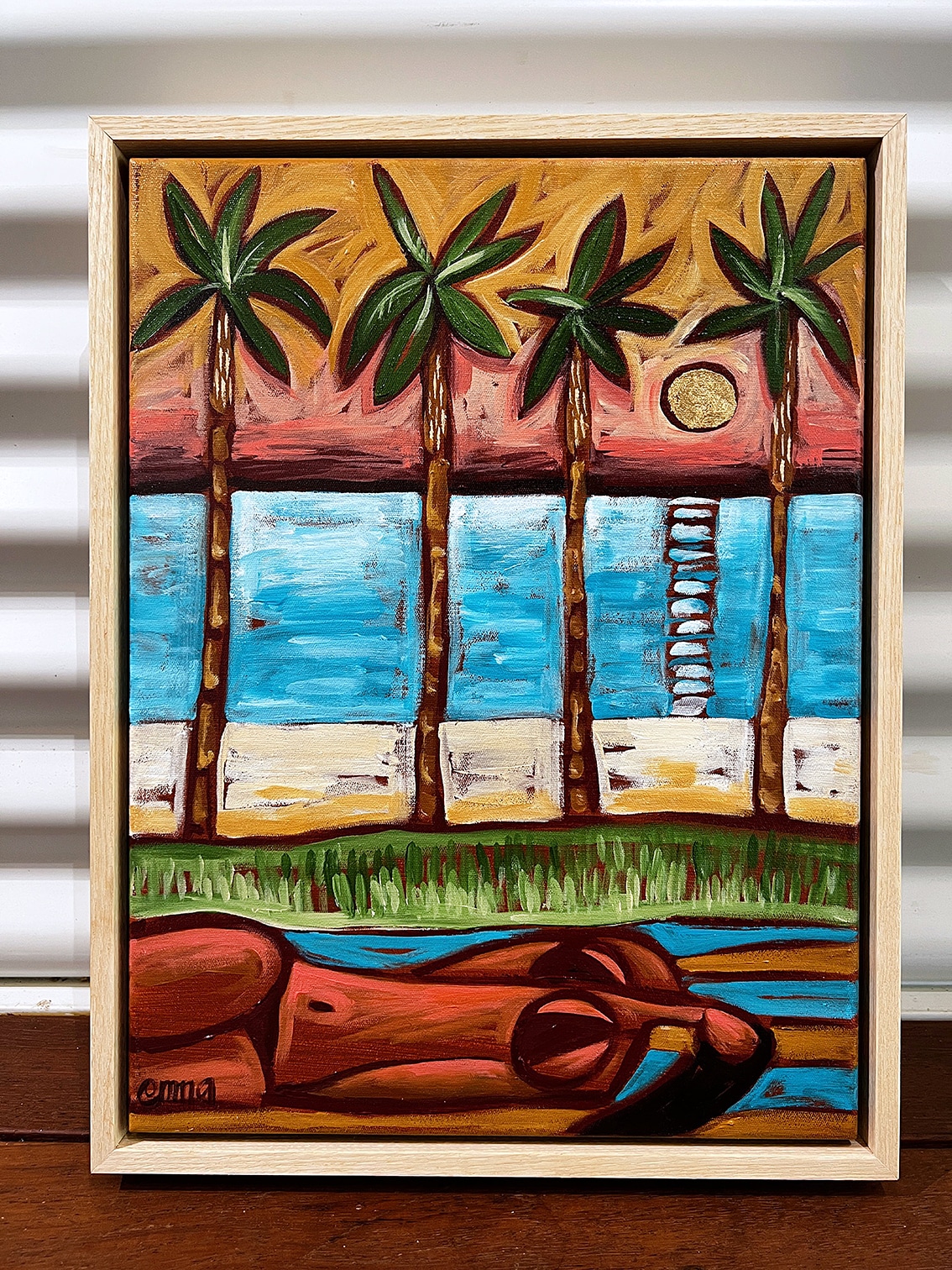 Acrylic and gold leaf on canvas – timber box frame