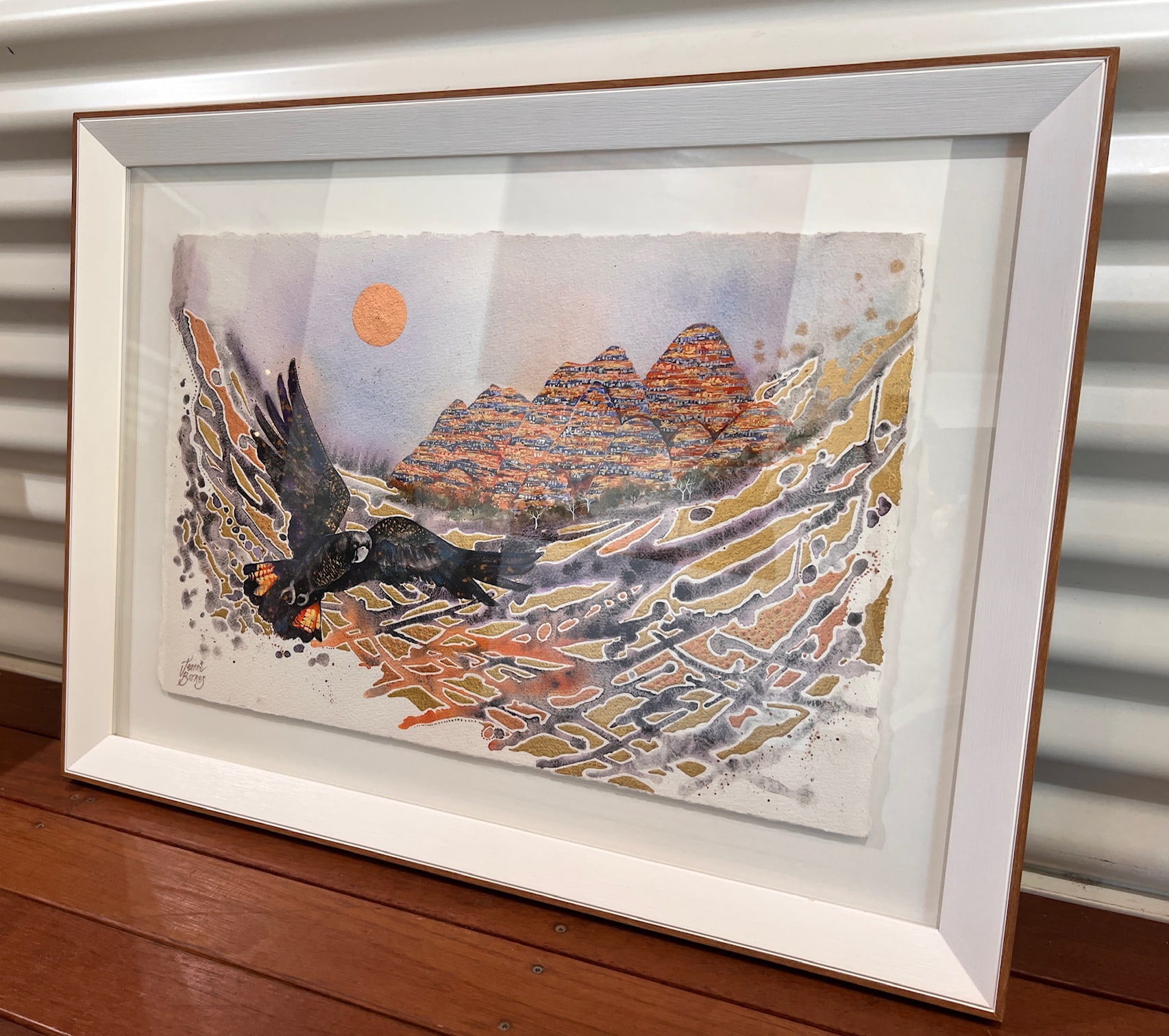 watercolour and metal leaf on paper framed
