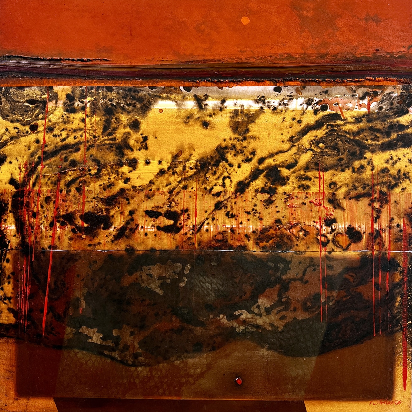 Bitumen, oil and acrylic on canvas