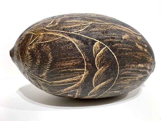 These nuts are from the boab tree which is found in the Kimberley region of Western Australia. They have been beautifully and skilfully carved with intricate designs by indigenous artists of the region. The artists engrave the nuts using sharpened knives and razor blades. The time spent engraving depends very much on the size of the nut and complexity and intricacy of the design.