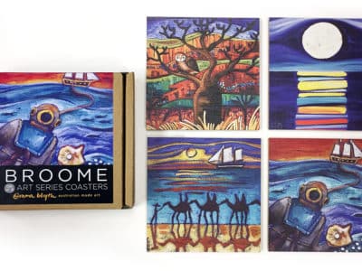 The native grass paper provide an ideal media for Emma’s art which together creates a distinctly beautiful memento of Australia.