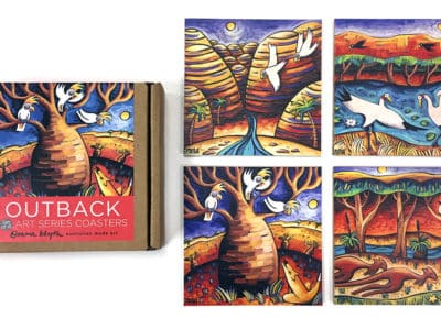 The native grass paper provide an ideal media for Emma’s art which together creates a distinctly beautiful memento of Australia.