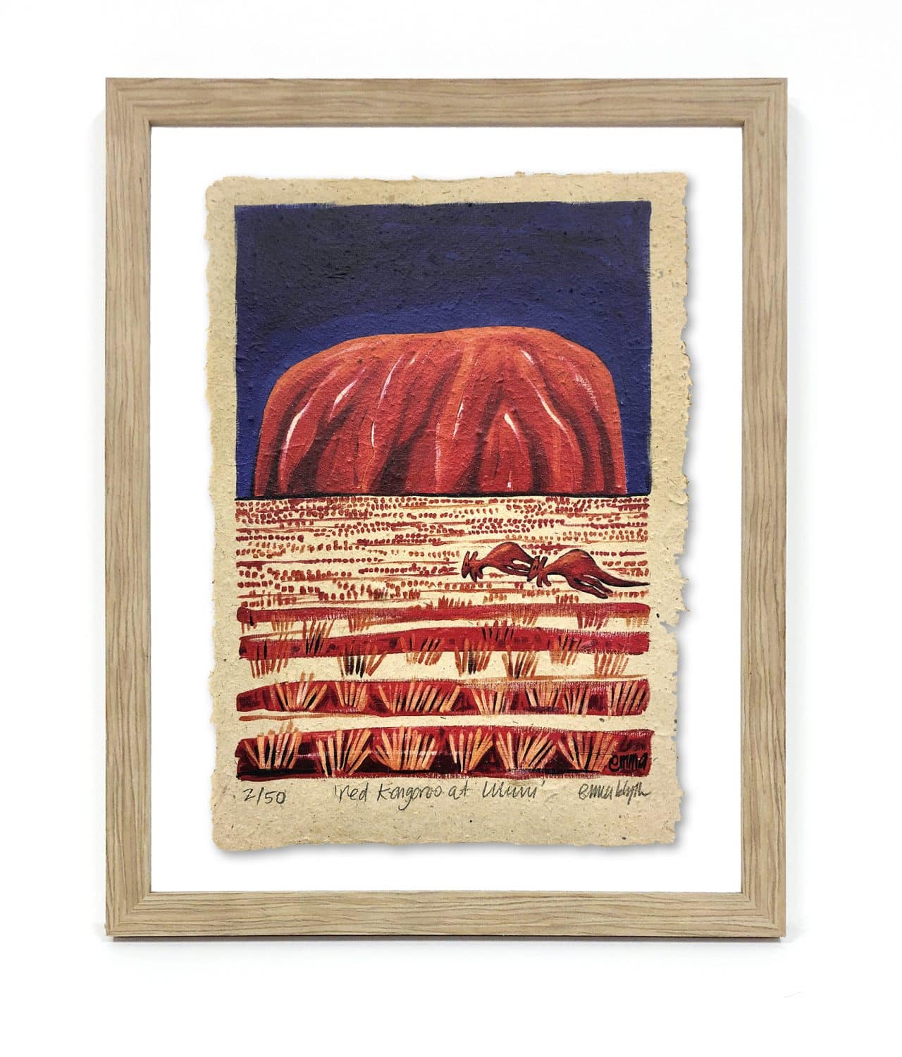 The grasses are harvested by hand, and each different type of paper has its own unique texture and feel, whether it be spinifex, kangaroo, mulga, woollybutt or kerosene grass. Each artwork is hand numbered and signed by the artist and comes with a certificate of authenticity. Printed using archival inks.